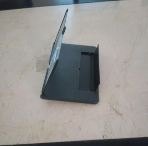 Funciona completamente de manera óptica y mecánica: simplemente coloca tu teléfono, ajusta el ángulo y listo.