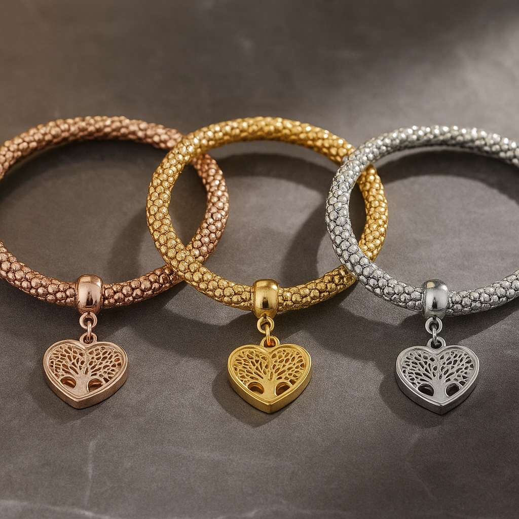 Sorprende con este set de Pulseras con Corazón; combina elegancia, brillo y significado en una sola pieza. ideales para enamorar o lucir.
