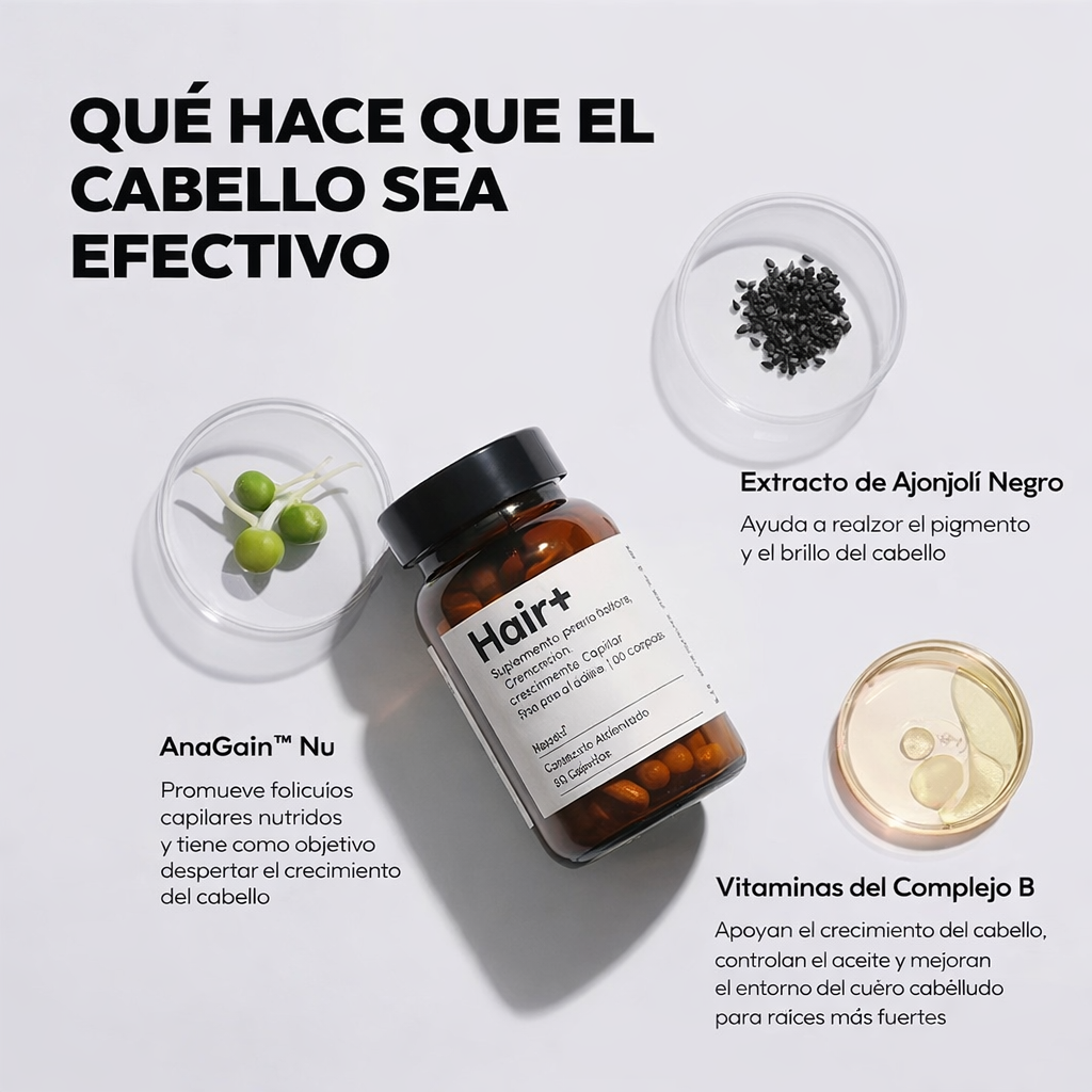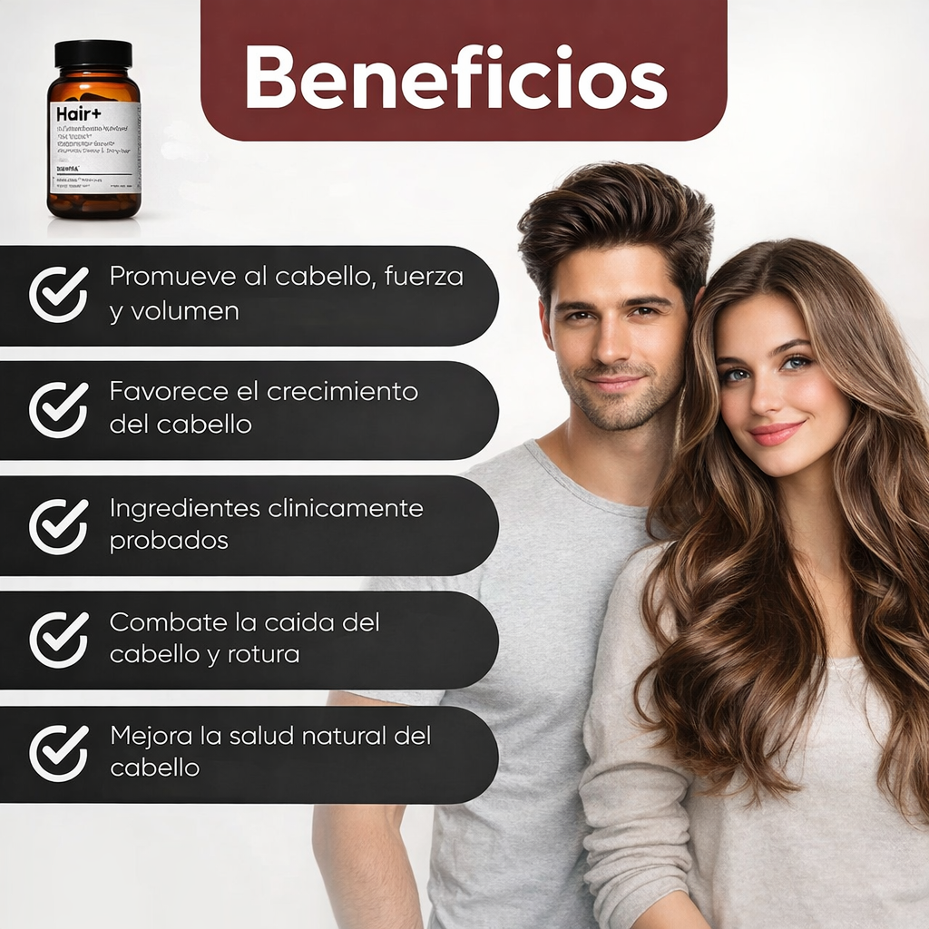 Hair+ te ayuda al crecimiento capilar.